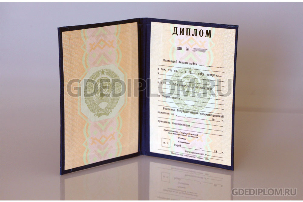 Ознакомьтесь с фотографиями дипломов вузов СССР старого образца, которые изготавливаются на настоящих подлинных бланках Гознак, со всем защитными элементами! Заполняется от руки профессиональными каллиграфами специальным чернильным пером, приложение пропечатывается на печатной машинке. Заверяется диплом старого образца печатью учебного заведения с гербом СССР (РСФСР) или России (для дипломов после 1993 года)