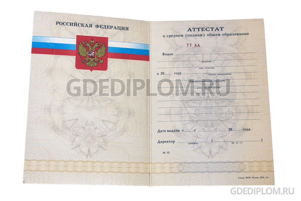 | Аттестат за 11 класс 2007, 2008, 2009 года Качество: оригинальный Гознак Подробнее |
