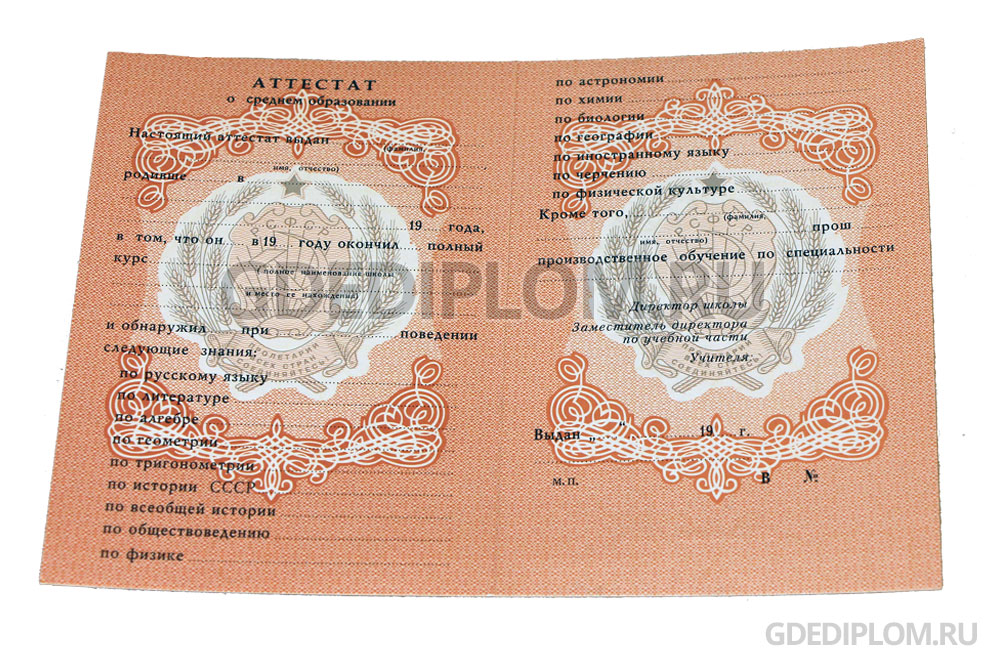 | Аттестат за 11 класс СССР до 1993 Качество: оригинальный Гознак Подробнее |